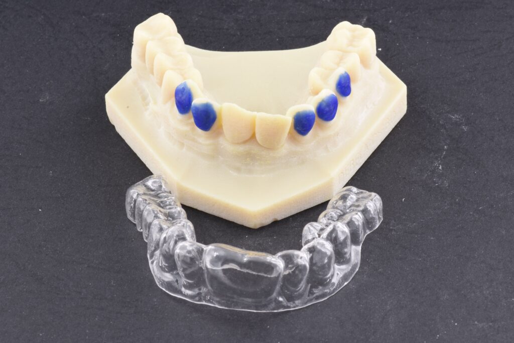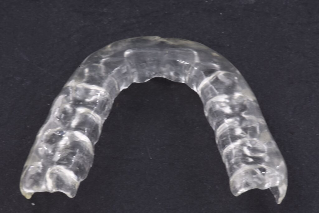 Le mascherine di contenzione, sono dispositivi trasparenti realizzati in materiale termoplastico resistente, e progettati per adattarsi perfettamente alla nuova arcata dentale del paziente. Il loro scopo è evitare che i denti tornino a spostarsi, soprattutto nei primi mesi dopo la rimozione dell’apparecchio, quando le strutture di supporto sono ancora in fase di stabilizzazione.